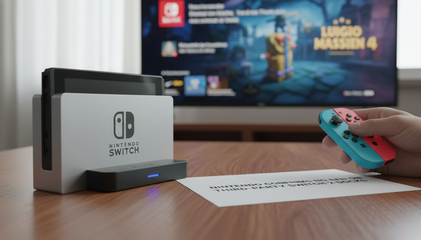 في الآونة الأخيرة، أعلنت شركة نيتندو أنها لا تعتزم حظر third-party docks لجهاز Switch 2، على الرغم من أن تحديث البرنامج الثابت الأخير قد أدى إلى تعطيل بعض هذه الدوكات. تأتي تصريحات نيتندو في ظل زيادة استياء المستخدمين بسبب هذه المشكلة.
